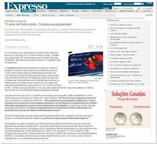 O meu primeiro livro, "O Amor de Pedro e Inês" foi noticia no Expresso Online