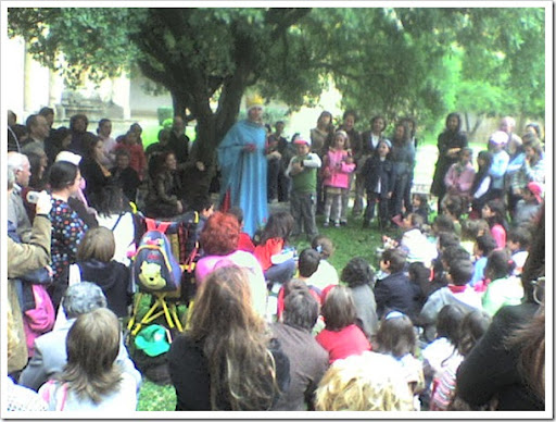 Pode-se ver o Claustro das Clarissas onde contei a História, vestida como Rainha Santa Isabel e o público - infantil e adulto, que nos foi apoiar neste grande dia para mim e para a Susana.